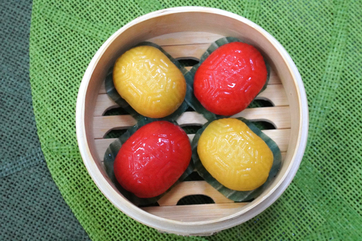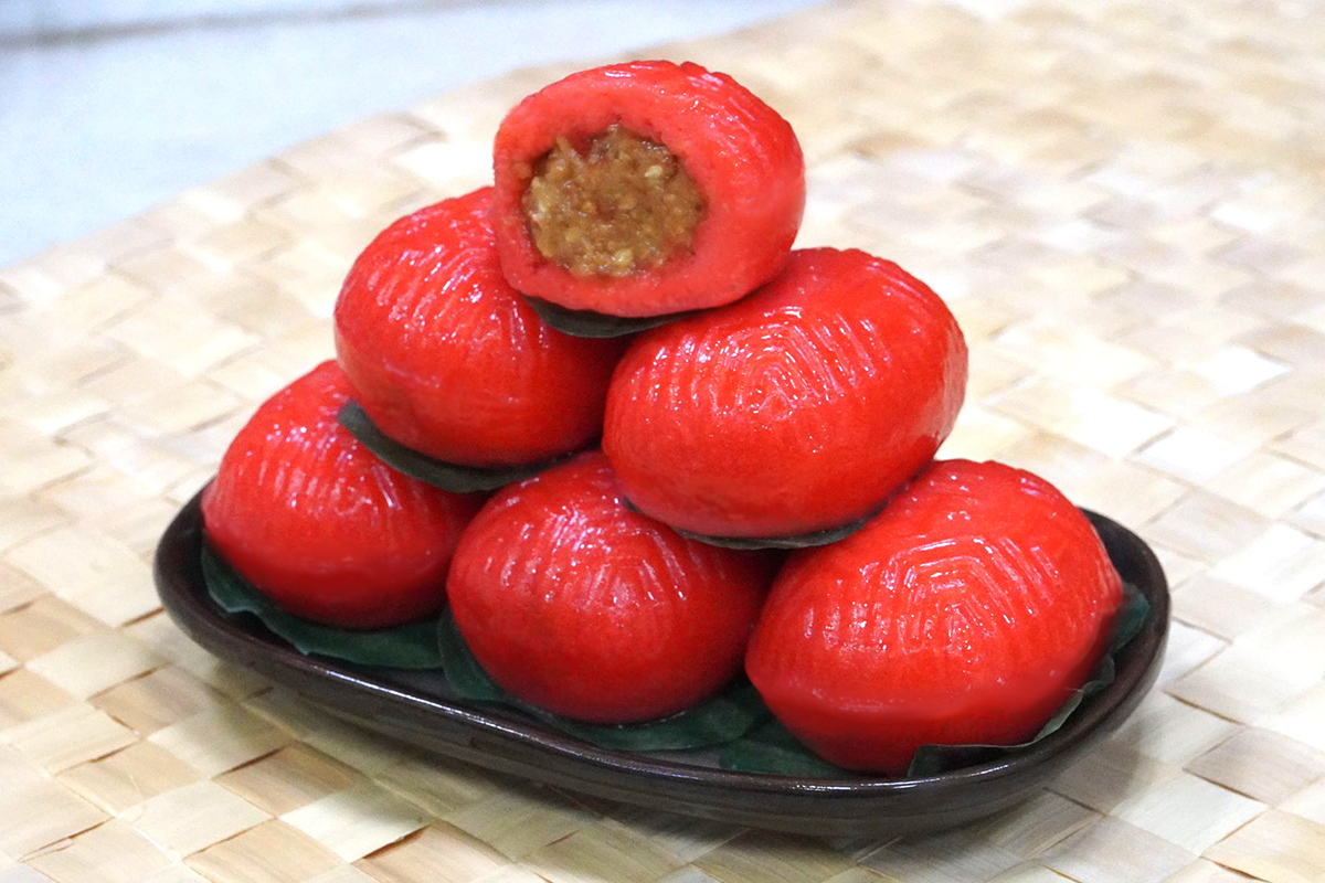Ang Ku Kueh, which translates as "Red Tortoise Cake," is a little oval-shaped Chinese dessert that originated in Fujian, China before coming to Southeast Asia. To have longevity and good fortune, tortoise-shaped desserts are to be offered to Chinese gods during festive events and on the first and fifteenth days of the lunar calendar.