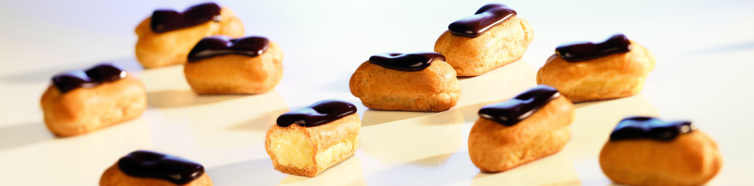 Chocolate Mini Eclair comes in a baked puff injected with vanilla filling. Serve them best at celebrations, parties, gatherings & potluck, etc.