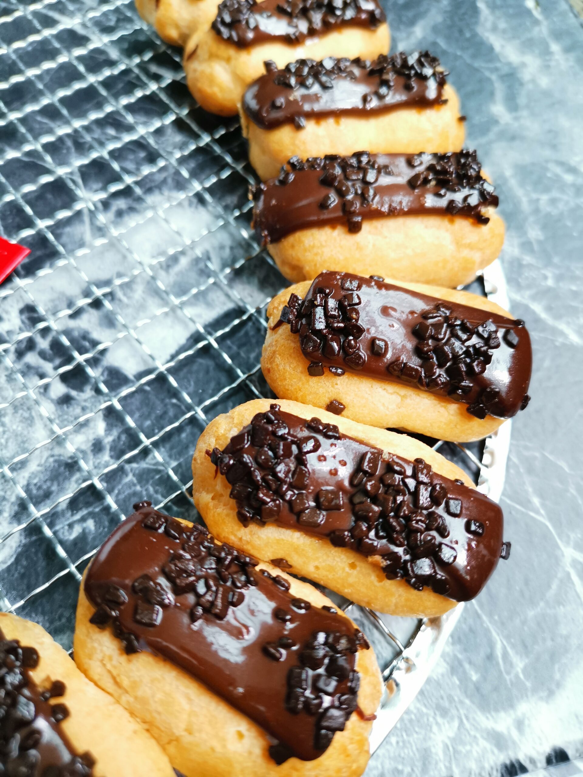 Dark Chocolate toppings with vanilla cream filling.